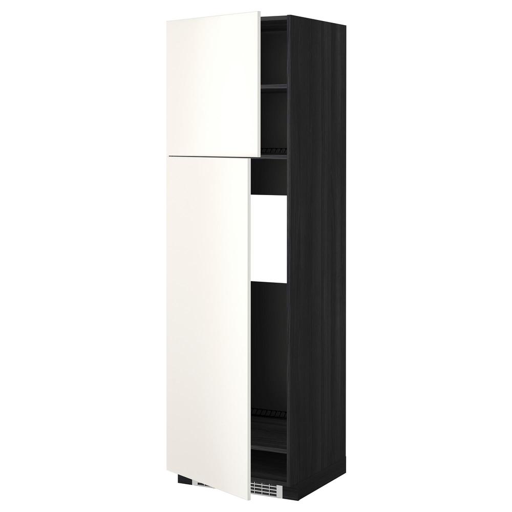 МЕТОД Высокий шкаф д/холодильника/2дверцы - под дерево черный, Веддинге белый, 60x60x200 см