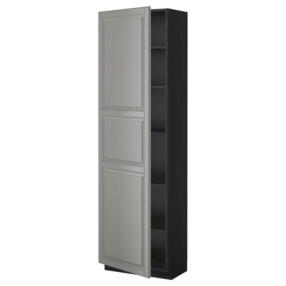 МЕТОД Высок шкаф с полками - под дерево черный, Будбин серый, 60x37x200 см