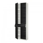 МЕТОД / ФОРВАРА Высокий шкаф+полки/2 ящика/4 дверцы - Лаксарби белый, под дерево черный