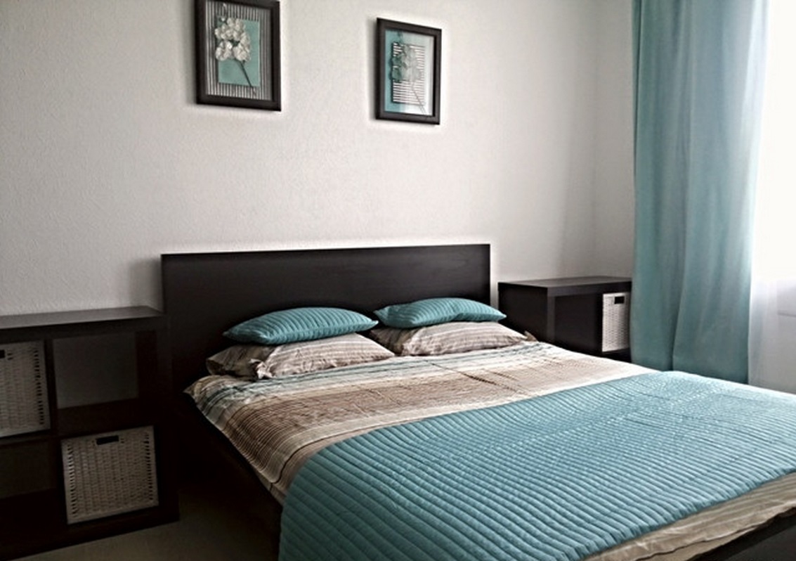 В интерьере спальни использованы: кровать МАЛЬМ, покрывала и чехлы на подушку КАРИТ, пододеяльник и наволочки ПАЛЬМЛИЛЬЯ, стеллаж МАЛЬМ и корзины БРАНЭС.