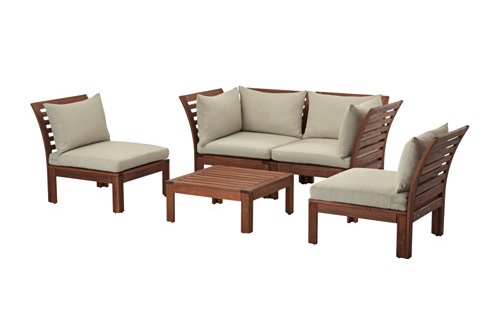 1. Первым пунктом в нашем рейтинге идет, конечно же, садовая мебель. Если ваш бюджет не ограничен, то можно выбрать комплект садовой мебели на 4 персоны из коллекции под названием ЭПЛАРО/ХОЛЛО. Эта покупка обойдется вам в 36 600 российских рублей. Ухаживать за этим комплектом мебели очень просто, с помощью мягкого мыльного раствора. Единожды в год рекомендуется обработать мебель морилкой, чтобы избежать выцветания, трещин и проникновения влаги. А мебельные подушки со съемными чехлами придадут дивану оригинальность и комфорт.