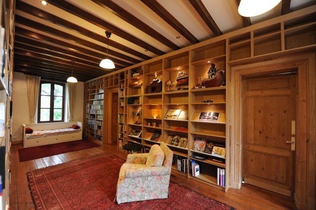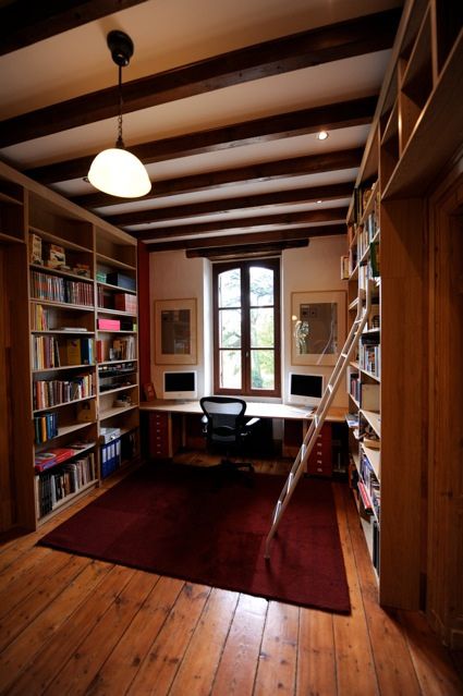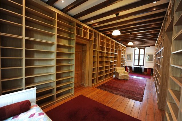 Вам понадобится около 60 стеллажей системы БИЛЛИ или серии БЕННУ для изготовления библиотеки шириной примерно 11*4 м и высотой 3.3 м. На таком пространстве нетрудно уместить целый встроенный офис. Не беда, если площадь вашей комнаты не позволяет установить библиотеку таких размеров, просто рассчитайте, сколько стеллажей вам потребуется и создайте уменьшенную копию.