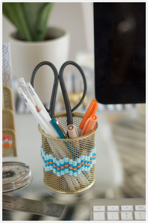 Сетчатая текстура стакана, напоминающая канву, идеально подходит для того чтобы вышить на ней какой-либо орнамент. Это может быть любой несложный рисунок, к примеру, змейка, обвивающая основание стакана или большое сердце, даже обычные разноцветные полоски придадут вещи совершенно новый и неповторимый вид.