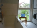 Следующим этапом, разведенной в соответствии с рекомендациями на упаковке затиркой, при помощи резинового шпателя заполняем все образовавшиеся швы. Затирка начинает быстро подсыхать, а оставшиеся белые следы на мозаике легко убираются влажной тканью. Если же где-то образовались небольшие разводы, то протрите столешницу сухой тряпкой.