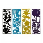 4 разноцветных текстильных пластины с вырезанными символами и фигурками.