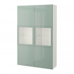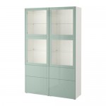 БЕСТО Комбинация д/хранения+стекл дверц - белый Сельсвикен/глянцевый/серо-зеленый светлый прозрачное стекло