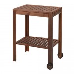 Мебель обработана полупрозрачной морилкой в несколько слоев. Это повышает ее прочность и подчеркивает выразительность натуральной фактуры дерева. Тележка ЭПЛАРО/КЛАСЕН обеспечивает дополнительное место для хранения. Легко перемещать. Также удобно использовать рядом с грилем ЭПЛАРО/КЛАСЕН – для размещения посуды и аксессуаров. Прочную поверхность полки из нержавеющей стали легко поддерживать в чистоте.