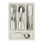 Миниатюрные столовые приборы для игры; нержавеющая сталь, с закругленными краями.