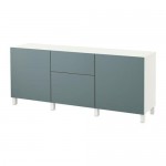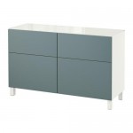 БЕСТО Комбинация для хранения с ящиками - белый/Вальвикен серо-бирюзовый, направляющие ящика, плавно закр