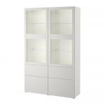 БЕСТО Комбинация д/хранения+стекл дверц - белый/Лаппвикен светло-серый прозрачное стекло, направляющие ящика,нажимные