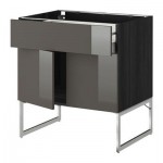 МЕТОД / МАКСИМЕРА Напол шкаф/полки/ящик/2двери - 80x60x60 см, Рингульт глянцевый серый, под дерево черный