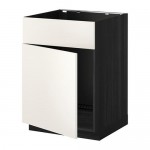 МЕТОД Напольный шкаф п-мойку с дв/фр пнл - под дерево черный, Воксторп белый