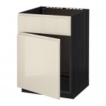 МЕТОД Напольный шкаф п-мойку с дв/фр пнл - под дерево черный, Воксторп глянцевый светло-бежевый