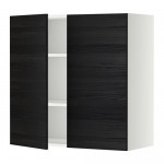 МЕТОД Навесной шкаф с полками/2дверцы - белый, Тингсрид под дерево черный, 80x100 см