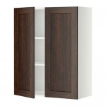 МЕТОД Навесной шкаф с полками/2дверцы - белый, Эдсерум под дерево коричневый, 80x60 см