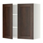 МЕТОД Навесной шкаф с полками/2дверцы - белый, Эдсерум под дерево коричневый, 80x100 см