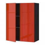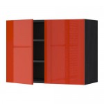 МЕТОД Навесной шкаф с полками/2дверцы - под дерево черный, Ерста глянцевый оранжевый, 80x100 см