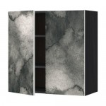 МЕТОД Навесной шкаф с полками/2дверцы - под дерево черный, Кальвиа с печатным рисунком, 80x60 см