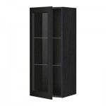 МЕТОД Навесной шкаф с полками/стекл дв - 40x80 см, Лаксарби черно-коричневый, под дерево черный