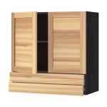 МЕТОД / ФОРВАРА Навесной шкаф/2дверцы/2ящика - под дерево черный, Торхэмн естественный ясень, 80x100 см