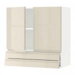 МЕТОД / МАКСИМЕРА Навесной шкаф/2дверцы/2ящика - белый, Воксторп глянцевый светло-бежевый, 80x100 см