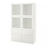 БЕСТО Комбинация д/хранения+стекл дверц - белый/Сельсвикен глянцевый/белый матовое стекло, направляющие ящика,нажимные