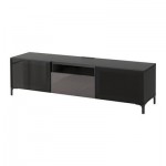 БЕСТО Тумба под ТВ - черно-коричневый/Сельсвикен глянцевый/серый дымчатое стекло, направляющие ящика,нажимные