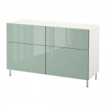 БЕСТО Комб для хран с дверц/ящ - белый/Сельсвикен глянцевый/серо-зеленый светлый, направляющие ящика,нажимные