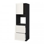 МЕТОД / МАКСИМЕРА Выс шкаф д/двойн духовки/3ящ/дверца - под дерево черный, Сэведаль белый, 60x60x220 см