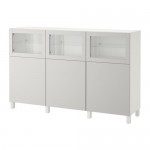 БЕСТО Комбинация для хранения с дверцами - белый/Синдвик светло-серый прозрачное стекло