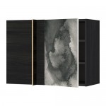 МЕТОД Угловой навесной шкаф с полками - под дерево черный, Кальвиа с печатным рисунком, 88x37x80 см