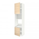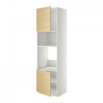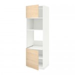 МЕТОД Выс шкаф д/духовки/СВЧ/2 дв/полки - белый, Аскерсунд под светлый ясень, 60x60x240 см