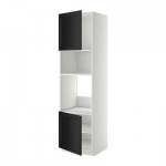 МЕТОД Выс шкаф д/духовки/СВЧ/2 дв/полки - 60x60x220 см, Нодста белый/алюминий, под дерево черный