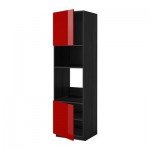 МЕТОД Выс шкаф д/духовки/СВЧ/2 дв/полки - 60x60x220 см, Рингульт глянцевый красный, под дерево черный