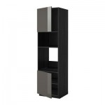 МЕТОД Выс шкаф д/духовки/СВЧ/2 дв/полки - 60x60x220 см, Лаксарби черно-коричневый, белый