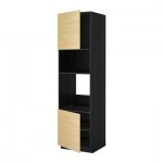 МЕТОД Выс шкаф д/духовки/СВЧ/2 дв/полки - 60x60x220 см, Тингсрид под березу, под дерево черный