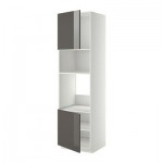 МЕТОД Выс шкаф д/духовки/СВЧ/2 дв/полки - 60x60x220 см, Рингульт глянцевый серый, белый