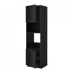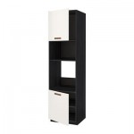 МЕТОД Выс шкаф д/духовки/СВЧ/2 дв/полки - 60x60x220 см, Лаксарби белый, под дерево черный