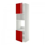 МЕТОД Выс шкаф д/духовки/СВЧ/2 дв/полки - 60x60x220 см, Рингульт глянцевый красный, белый