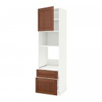 МЕТОД / МАКСИМЕРА Высок шкаф д/духовки/СВЧ/дверца/2ящ - белый, Эдсерум под дерево коричневый, 60x60x240 см