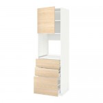 МЕТОД / МАКСИМЕРА Высокий шкаф д/духовки/дверь/3ящика - белый, Аскерсунд под светлый ясень, 60x60x240 см