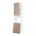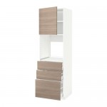 МЕТОД / МАКСИМЕРА Высокий шкаф д/духовки/дверь/3ящика - белый, Брокхульт под грецкий орех светло-серый, 60x60x220 см