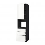 МЕТОД / МАКСИМЕРА Высокий шкаф д/духовки/дверь/3ящика - под дерево черный, Рингульт глянцевый белый, 60x60x240 см