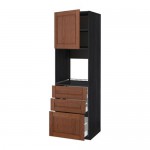 МЕТОД / МАКСИМЕРА Высокий шкаф д/духовки/дверь/3ящика - под дерево черный, Филипстад коричневый, 60x60x220 см