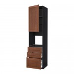 МЕТОД / МАКСИМЕРА Высокий шкаф д/духовки/дверь/3ящика - под дерево черный, Филипстад коричневый, 60x60x240 см
