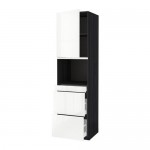 МЕТОД / МАКСИМЕРА Высокий шкаф д/СВЧ/дверца/3ящика - под дерево черный, Рингульт глянцевый белый, 60x60x240 см
