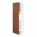 МЕТОД Высокий шкаф д/холодильника/2дверцы - белый, Эдсерум под дерево коричневый, 60x60x220 см