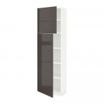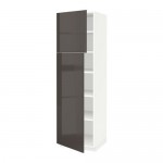 МЕТОД Высокий шкаф с полками/2 дверцы - белый, Рингульт глянцевый серый, 60x60x200 см