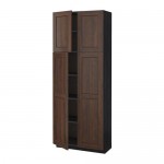 МЕТОД Высокий шкаф с полками/4 дверцы - под дерево черный, Эдсерум под дерево коричневый, 80x37x200 см