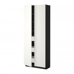 МЕТОД / МАКСИМЕРА Высокий шкаф с ящиками/2 дверцы - под дерево черный, Хэггеби белый